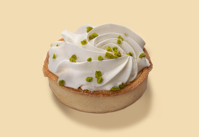 Вкус яблока под слоем нежного суфле и воздушной «шапкой» ванильных сливок, в песочной основе